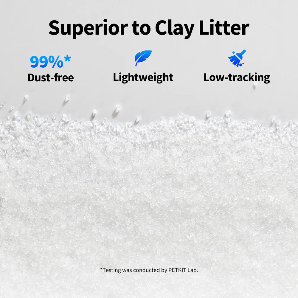 - Up to 30 Days Scoop-Free Convenience: Experience true low-maintenance cat care. With superior absorption capacity, the PETKIT Crystal Litter lasts up to 30 days for a single cat, reducing the need for daily scooping or refilling. Simply load the tray and let your automatic litter box handle the rest—saving you time and effort.