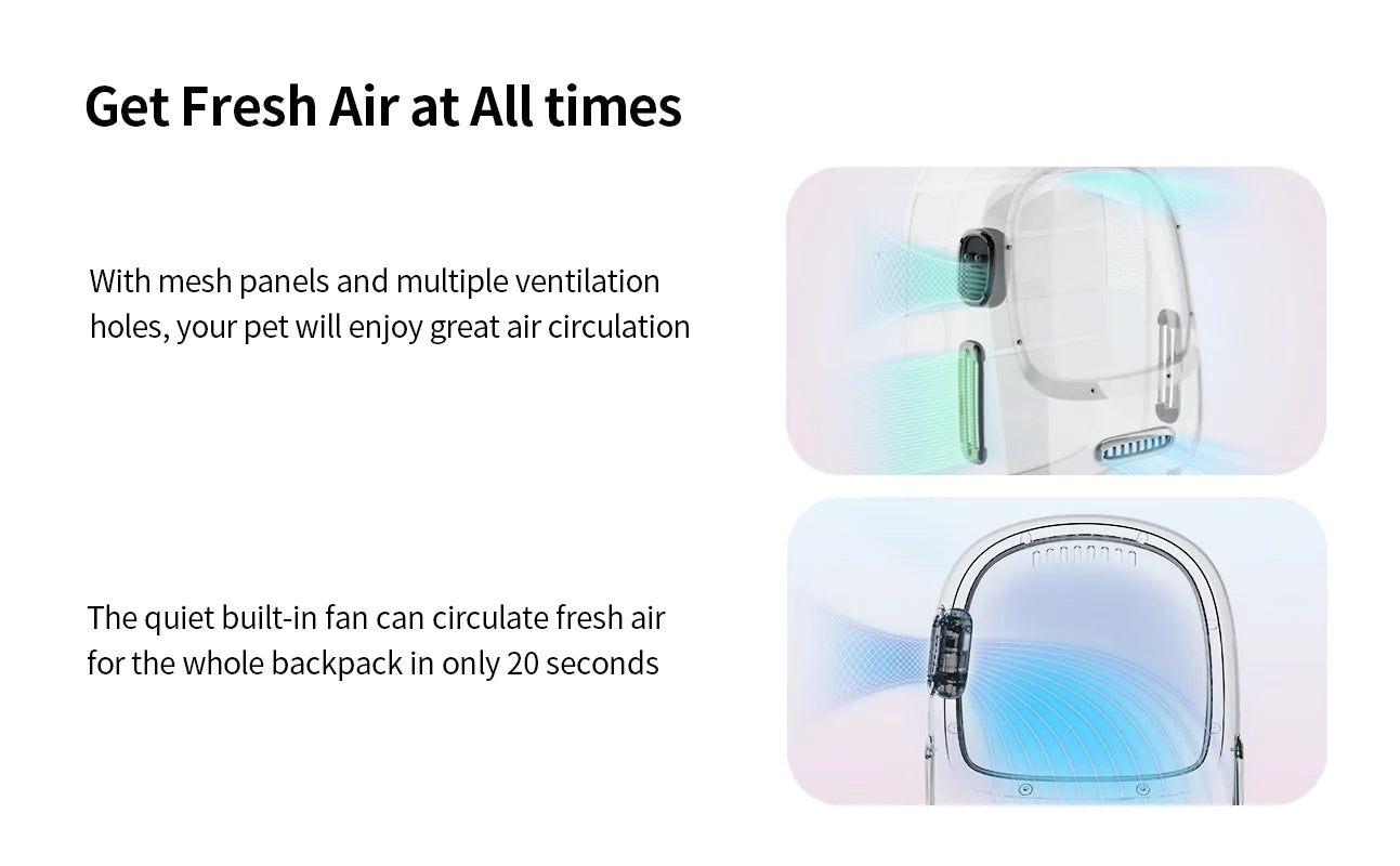 - Breezy: With mesh panels and multiple ventilation holes, plus our clever ventilation system, your pet will enjoy good air circulation on the go.
