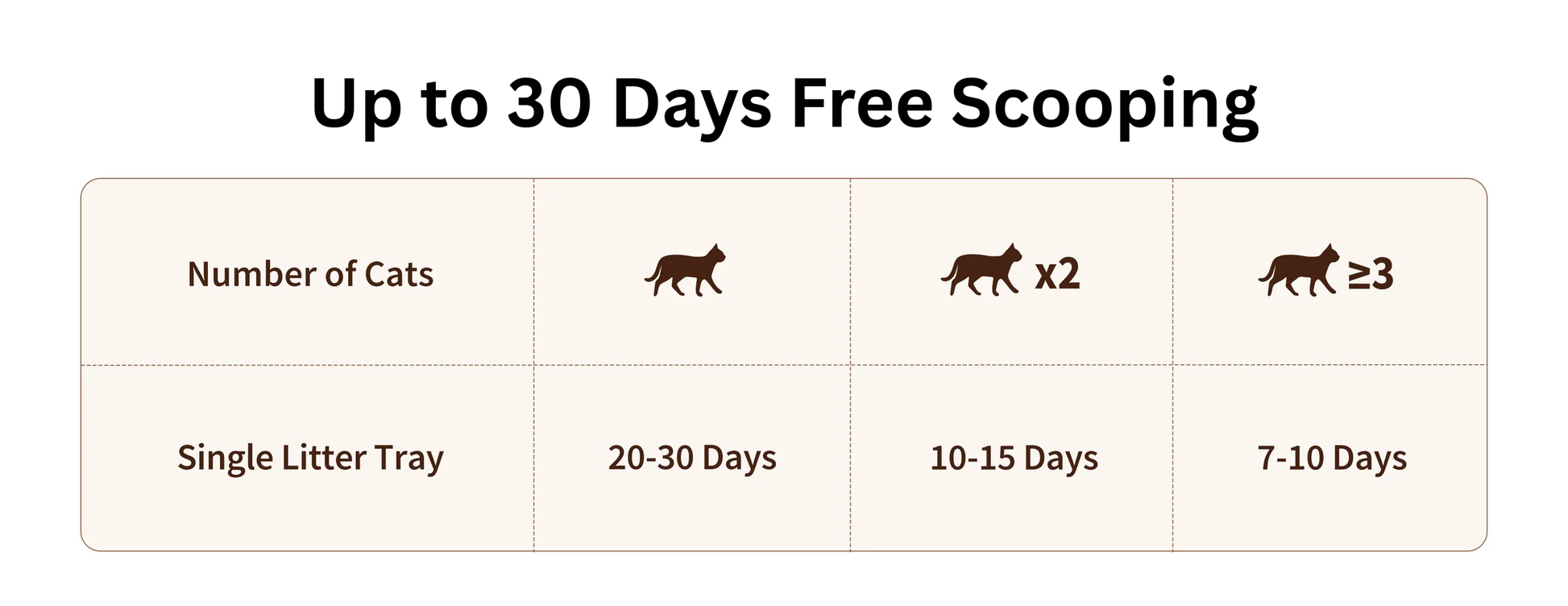 Enjoy up to 30 days of scoop-free convenience, with an open-top design that provides complete freedom and comfort for cats of all sizes — from playful kittens to large breeds like Maine Coons.